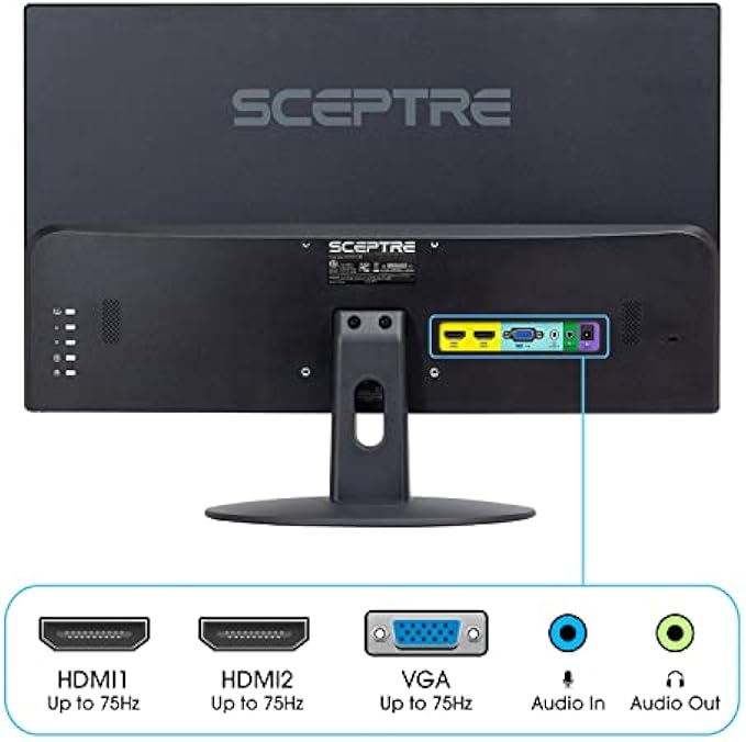 Sceptre 24" Professional Thin 75Hz 1080p LED Monitor 2x HDMI VGA Build-in Speakers, Machine Black (E248W-19203R Series)