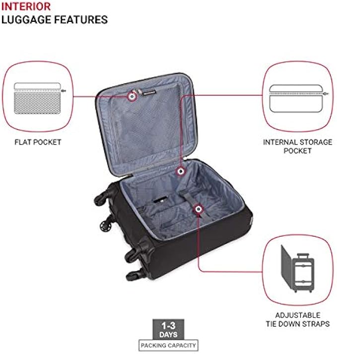 SwissGear 4010 Softside Luggage with Spinner Wheels, Black, Carry-On 18-Inch