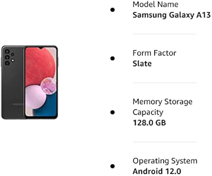 SAMSUNG Galaxy A13 (SM-A135F/DS) Dual SIM,128 GB 4GB RAM, Factory Unlocked GSM, International Version - No Warranty - (Black)