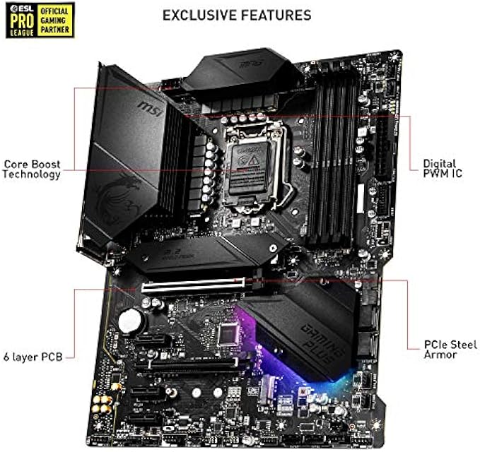 MSI MPG Z490 Gaming Plus Gaming Motherboard (ATX, 10th Gen Intel Core, LGA 1200 Socket, DDR4, CF, Dual M.2 Slots, USB 3.2 Gen 2, 2.5G LAN, DP/HDMI, Mystic Light RGB)