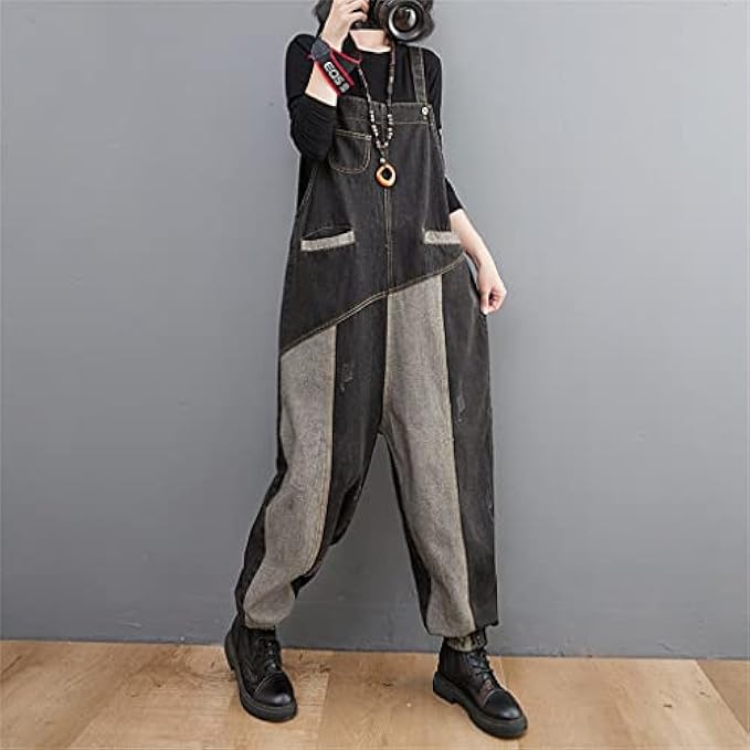 DSFEOIGY Fashion Stitching Denim Overalls Wide-Leg Jumpsuit Vintage Jeans (Color : D, Size : L Code)