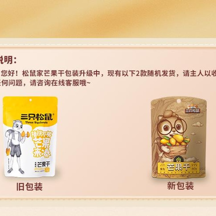 China Three Squirrels flavor casual candied fruit and dried mango 60g/pack