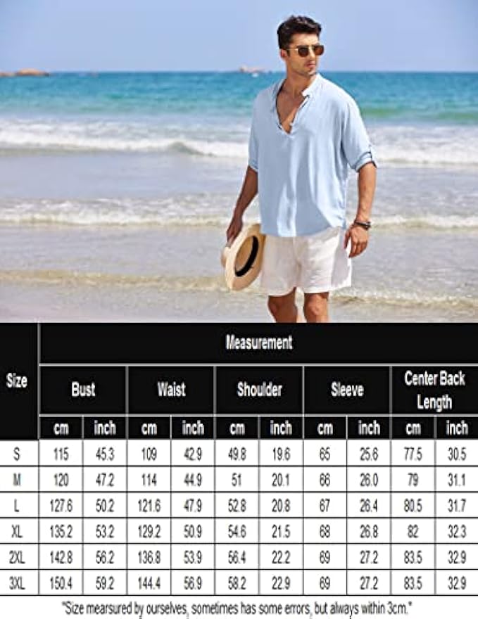 • 【Premium Fabric】Lightweight cotton linen material bring the ultimate in all seasons comfort to a smartly tailored henley shirt.