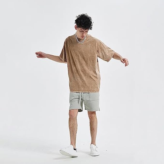 Aelfric Eden Mens Cotton Wash Solid T-Shirts Oversized Unisex Short Sleeve Streetwear Rap Hip Hop Basic Tee Tops