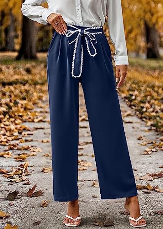 • Features: Casual Trousers With Pockets, Straight Leg Pants For Women, Women’s Wide Leg Pants, High Waist Tie Pants, Solid Color Pants With Belt, Palazzo Pants, Elastic High Waist Trousers, y2k Fashion Pants, 2023 Fall Women’s Pants With Side Pockets.