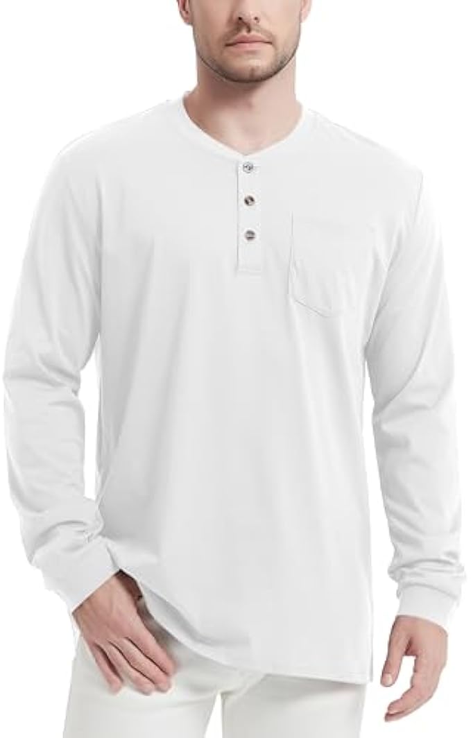 • Classic Henley Design: This long sleeve shirt features a henley neck, ribbed neckline, three button closure, which boasts a simple style, both classic and fashion-forward. While the convenient chest pocket adds functionality to the design.