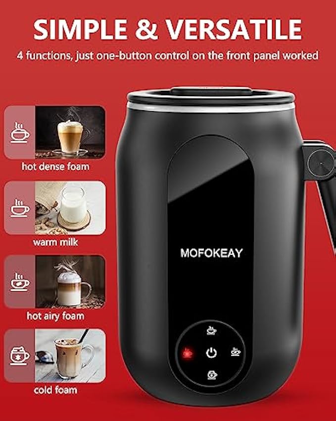 MOFOKEAY Upgraded Milk Frother and Steamer, Frother for Coffee, 4-in-1 Automatic Hot and Cold Foam Maker, Electric Milk Steamer, Auto Shut-Off Frother for Latte, Cappuccinos, Macchiato & Hot Chocolate