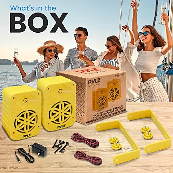 PyleUsa Bluetooth Indoor Outdoor Speakers Pair-500Watt Dual Waterproof 5.25” 2-Way Full Range Speaker System w/ 1/2”High Compliance Polymer Tweeter-Home, Boat, Marine, Deck,Patio,Poolside - PDWRBT56YL