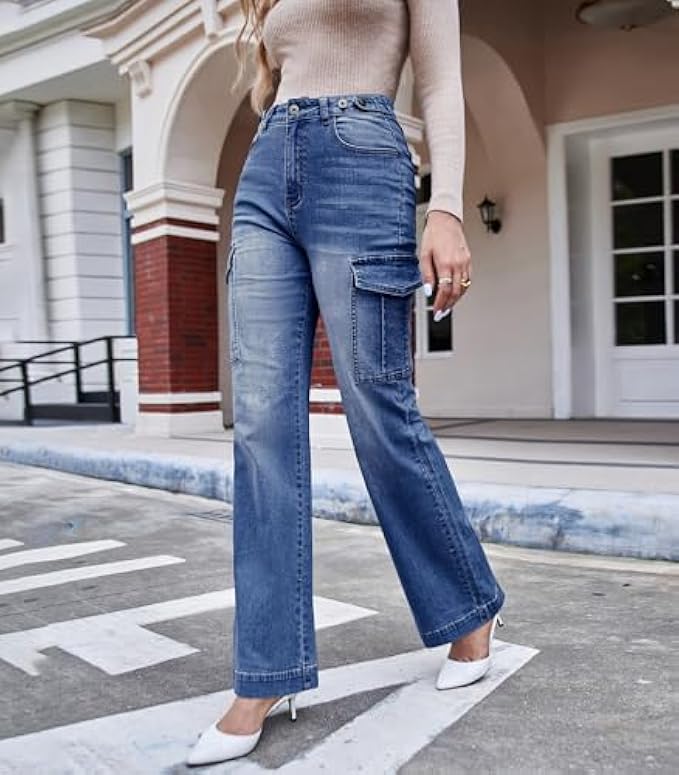 • Style:Bell bottom cargo jeans for women/High waisted mom jeans/Jeans for women high waist stretchy/Boyfriend baggy jeans for women/Wide leg trouser pants for women/Adjustable waist cargo pants women/Business casual pants for women