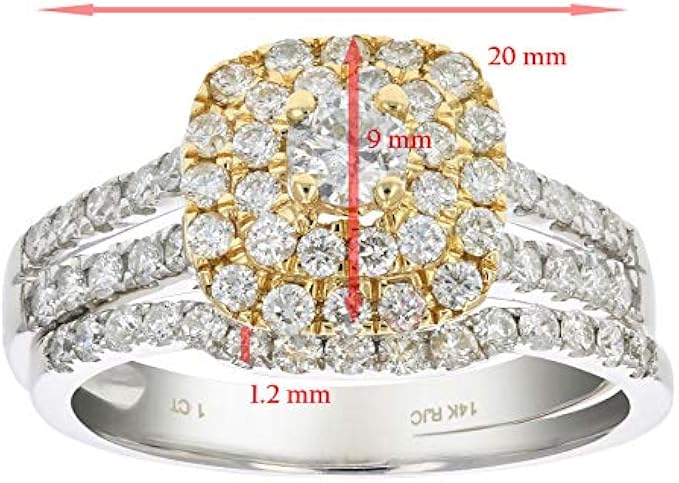 VIR JEWELS 1 cttw Diamond Wedding Bridal Ring Set 14K Two Tone Gold Cushion Halo Engagement