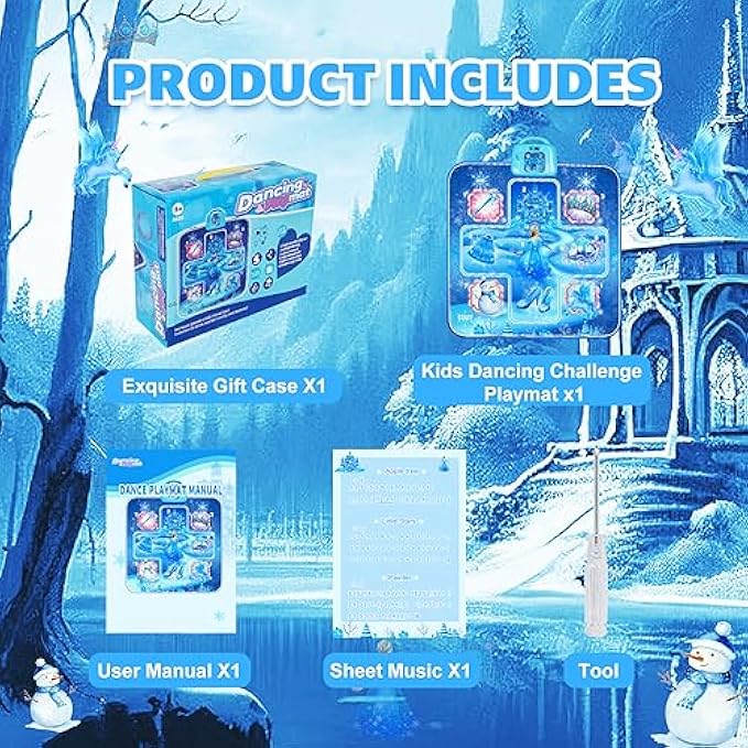• 【Durable & Anti-Slip】Crafted from heavy-duty vinyl material, our frozen dance mat toy for girls has successfully passed CPSIA & ASTM standard tests. It is non-toxic, softly padded, and waterproof. The dance mat is made with sturdy and durable components, specifically designed to withstand continuous tapping and jumping. The patterns on the back provide a non-slip surface for added safety.