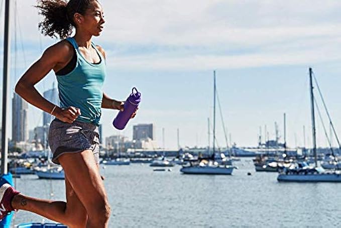 • Insulated Spout Lid: This stainless steel water bottle comes with an innovative leakproof insulated spout lid that allows for easy one-handed drinking or pouring. It features a hinge lock that keeps the cap out of your way while drinking