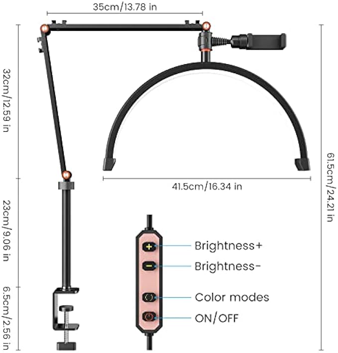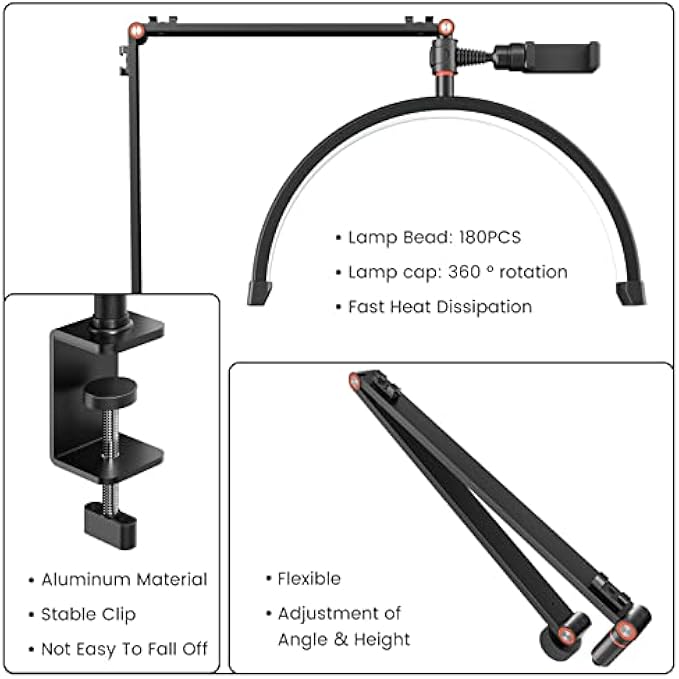 • ⭐️【Easy To Assemble & Adjustable】: Half moon led light can be installed in 10 minutes, without screws, The stand can adjust. with a desk clip with a maximum clamping distance of 6.5 cm, it is compatible with most desks, easy to install, and saves much space. With eyelash extension light led, you can be sure that the lash lamp will fit in your working space perfectly.