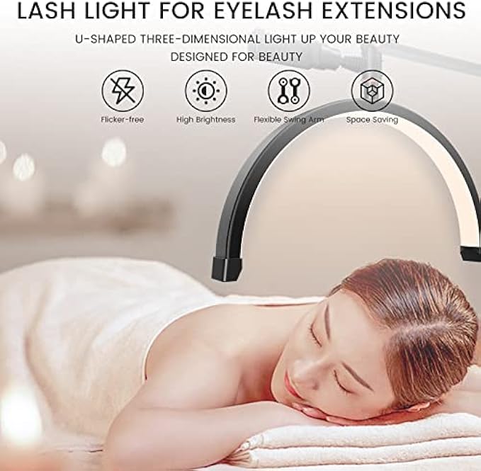 • ⭐️【Easy To Assemble & Adjustable】: Half moon led light can be installed in 10 minutes, without screws, The stand can adjust. with a desk clip with a maximum clamping distance of 6.5 cm, it is compatible with most desks, easy to install, and saves much space. With eyelash extension light led, you can be sure that the lash lamp will fit in your working space perfectly.