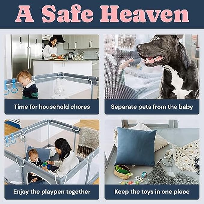 • Free Parents' Hands: The TODALE Large Baby Playpen transforms into a wonderfully safe playground for your babies! It encourages kids to explore the world, learn how to move independently, and enjoy playtime, while ensuring they are safe from potential hazards or getting lost. Meanwhile, parents can free their hands to take care of other tasks.
