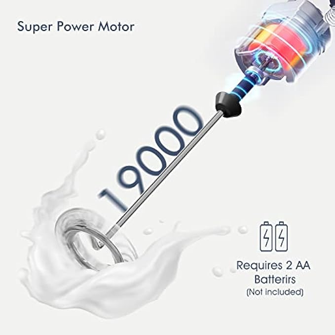 • Rich Foam in Seconds -- Effortlessly create creamy froth in seconds with the high-speed rotation of the food-safe stainless-steel whisk and shaft.