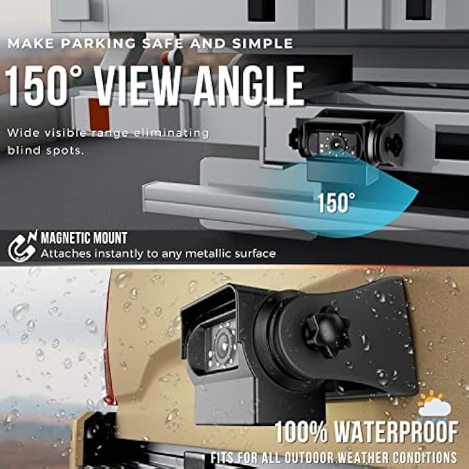 • ➤【Magnetic Mount】This small hitch camera attaches instantly to any metallic surface via extra-strength magnetic base with no hardware get simple setup and repositioning to suit your needs.