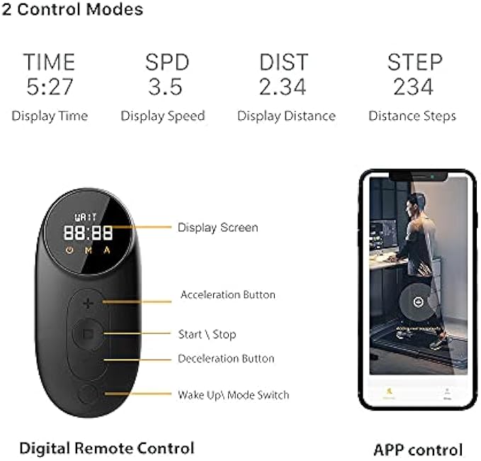 • Exquisite Remote Control With High Definition Monitor: This WalkingPad treadmill P1 uses wireless remote control which is creative designed with finger-feel key and high definition screen, you can use this remote to do on/off, manual/automatic, accelerate/decelerate, start/pause function and also with the speed/time/millage/calories display, the speed accuracy is +/- 0.5MPH and range is 0.5~4MPH, and this walking pad is not only used in walking but also widely used in jogging.