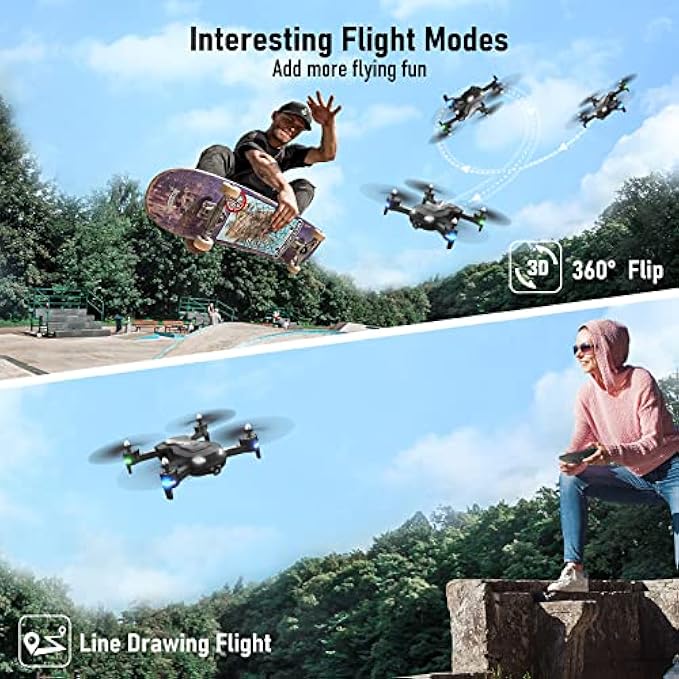• 360° Flip: Press the flip button and control the right joystick, the drone will rotate 360° in the air. press the “One Key Start/Landing” button, and the drone will take off or land automatically. The drone contains a total of 3 flight speed modes, low speed for children and beginners.