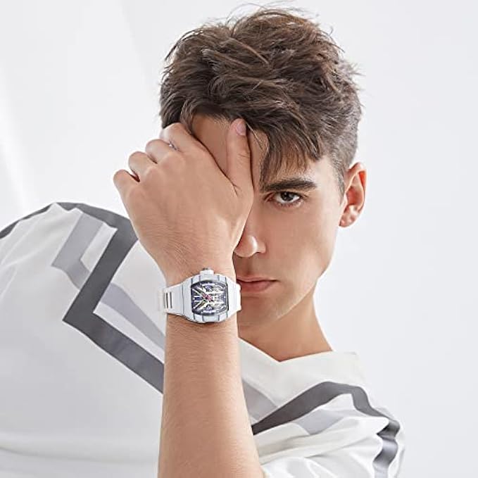 • 【100% ORIGINAL GENUINE】The imported automatic machine movement from Switzerland has guaranteed quality, enjoys the global joint guarantee of the brand, and the international warranty service lasts for three years. The whole watch is made of unique carbon fiber shell, scratch-resistant, fluororubber strap, skin-friendly material, barrel appearance, ergonomic design, and feels light and comfortable to wear. Handsome looks attract people's attention.