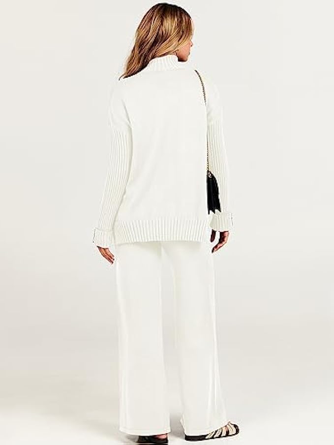 ANRABESS Women's Two Piece Outfits Sweater Sets Long Sleeve Knit Pullover and Wide Leg Pants Lounge Sets