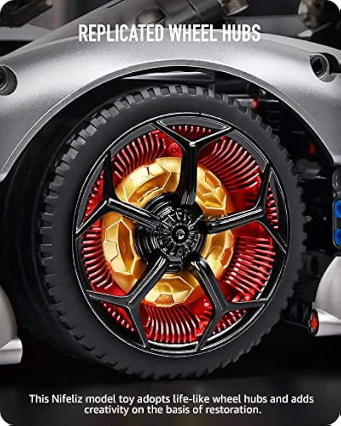 • Appealing appearance - This Nifeliz supercar display piece is composed of many silver-gray components for a more luxurious look. The front end in the shape of shark gills, together with iconic Y-shaped headlights, make this Nifeliz car toy more recognizable. The wheel hubs of this Nifeliz vehicle building kit are reproduced well with red, gold, and black color, which catch your eyes at a very first sign, certainly a highlight of this replica.