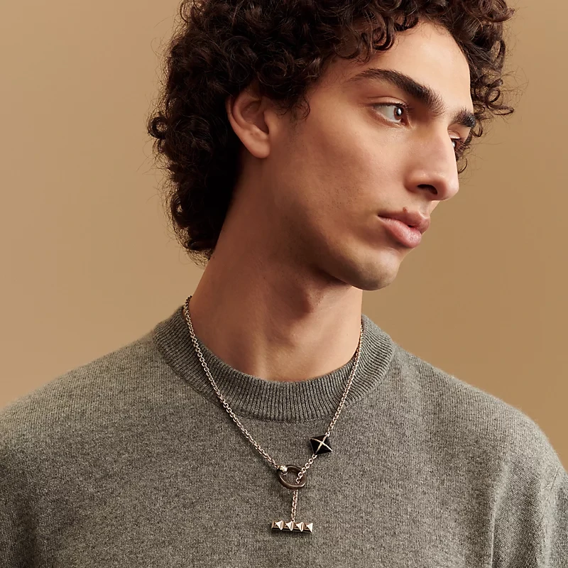 Inspired by the pyramid-shaped rivets and rings from the Collier de Chien collection, this collection is ideal for gifting or as a subtle expression of love. These two unique aesthetic elements allude to the letters X and O, reminiscent of the expression "XOXO". This modern signature is used to express love at the end of a personal message.