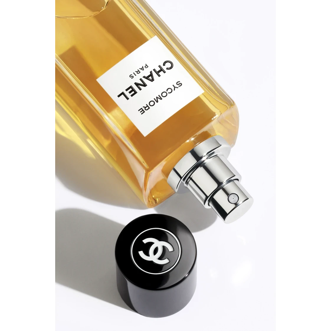 Chanel Sycamore Wood Eau de Parfum has a smoky woody aroma of vetiver, accentuated by cedar and vanilla, exuding a reassuring light spicy scent.